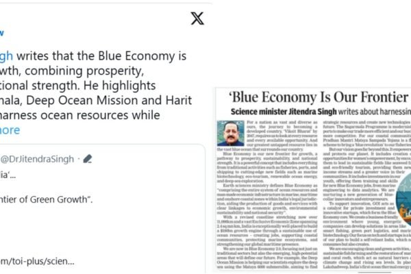 नई दिल्ली, 19 सितंबर 2025 प्रधानमंत्री श्री नरेन्द्र मोदी ने आज केंद्रीय राज्य मंत्री डॉ. जितेन्द्र सिंह द्वारा लिखे गए एक लेख को साझा किया, जिसमें उन्होंने बताया है कि भारत की आर्थिक वृद्धि में ब्लू इकोनॉमी समृद्धि, सतत विकास और राष्ट्रीय शक्ति का महत्वपूर्ण आधार है। प्रधानमंत्री ने कहा, “डॉ. जितेन्द्र सिंह ने अपने…