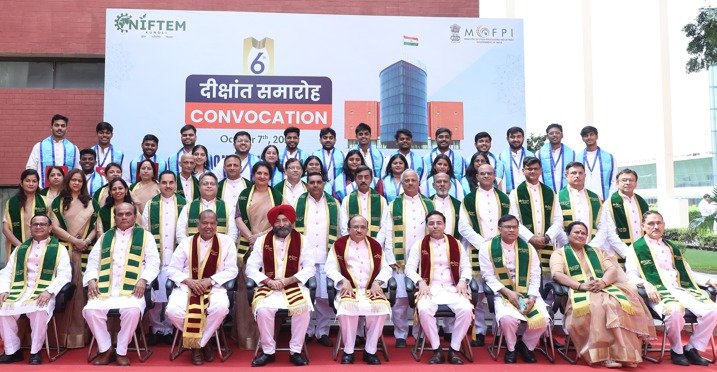 राष्ट्रीय खाद्य प्रौद्योगिकी, उद्यमिता एवं प्रबंधन संस्थान (निफ्टेम-के), कुंडली ने आज अपना 6वां दीक्षांत समारोह एवं स्थापना दिवस भव्य रूप से मनाया। इस अवसर पर भारत सरकार के प्रधान वैज्ञानिक सलाहकार प्रोफेसर अजय कुमार सूद मुख्य अतिथि के रूप में उपस्थित रहे। समारोह में खाद्य प्रसंस्करण उद्योग मंत्रालय (MoFPI) के संयुक्त सचिव श्री देवेश देवल, प्रोफेसर वी. रामगोपाल राव, अध्यक्ष, बोर्ड ऑफ गवर्नर्स (BoG), निफ्टेम-के, तथा बिकानो के प्रबंध निदेशक श्री श्याम सुंदर अग्रवाल विशिष्ट अतिथि के रूप में शामिल हुए। कार्यक्रम में प्रतिष्ठित शिक्षाविदों, वैज्ञानिकों और उद्योग जगत के प्रमुख नेताओं ने भाग लिया।