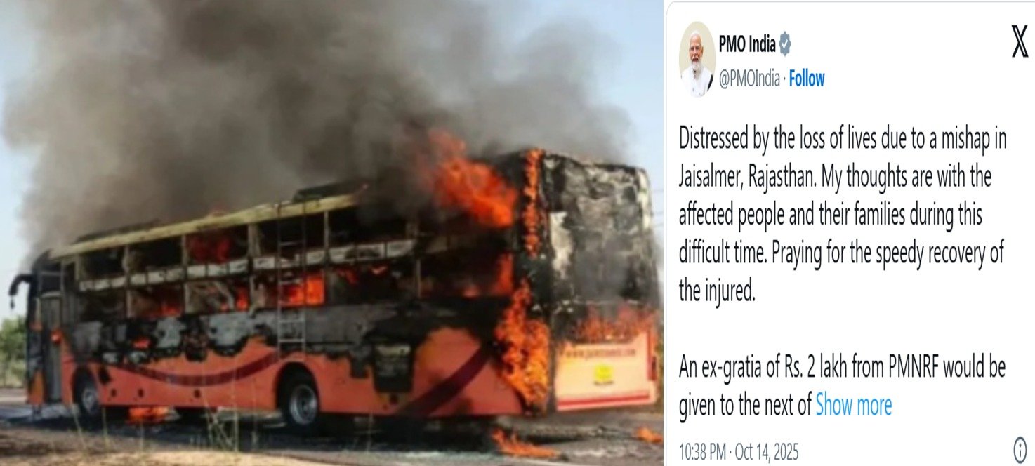 जैसलमेर बस हादसे में 20 लोगों की जली हुई मौत, पहचान के लिए DNA जांच की तैयारी, PM ने जताया दुख