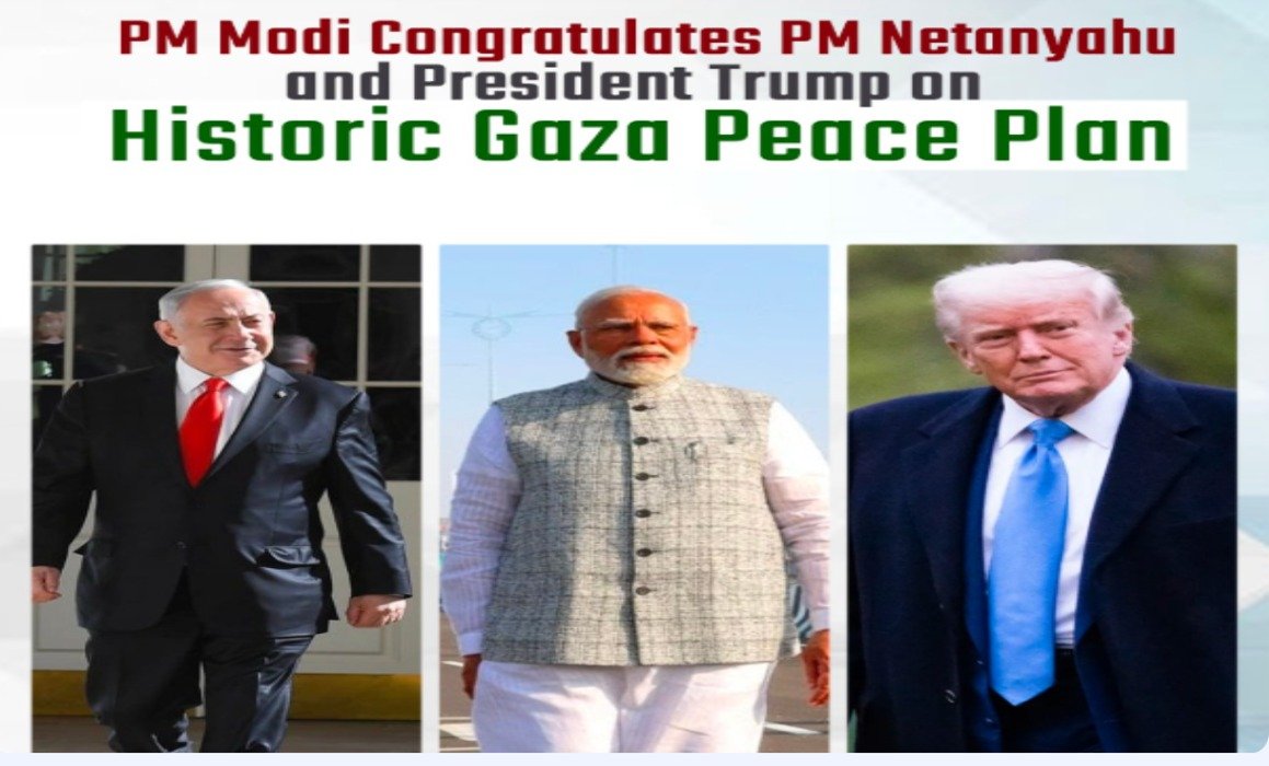 नई दिल्ली, 10 अक्टूबर 2025 — प्रधानमंत्री नरेंद्र मोदी ने ऐतिहासिक ग़ज़ा शांति योजना की सफलता पर अमेरिका के राष्ट्रपति डोनाल्ड ट्रम्प और इज़रायल के प्रधानमंत्री बेन्ज़ामिन नेतन्याहू को बधाई दी है।