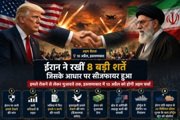 अमेरिका और ईरान के बीच हाल ही में हुए सीजफायर के पीछे कई अहम शर्तें सामने आई हैं। बताया जा रहा है कि ईरान ने कुल 8 बड़ी शर्तें रखीं, जिनके आधार पर दोनों देशों के बीच अस्थायी युद्धविराम संभव हो सका। सूत्रों के मुताबिक इन सभी प्रस्तावों और शर्तों पर आगे की रणनीति तय…