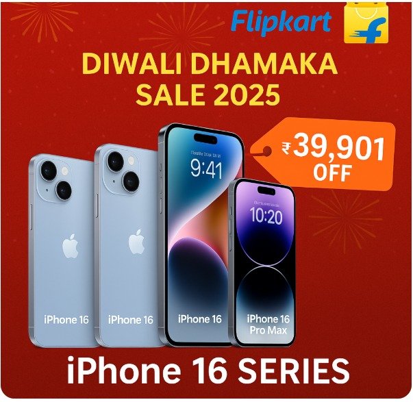Flipkart हर साल त्योहारों पर “Big Billion Days” और “Diwali Dhamaka” जैसी सेल लेकर आता है, लेकिन इस बार iPhone 16 सीरीज पर मिल रहा डिस्काउंट अब तक का सबसे बड़ा माना जा रहा है।